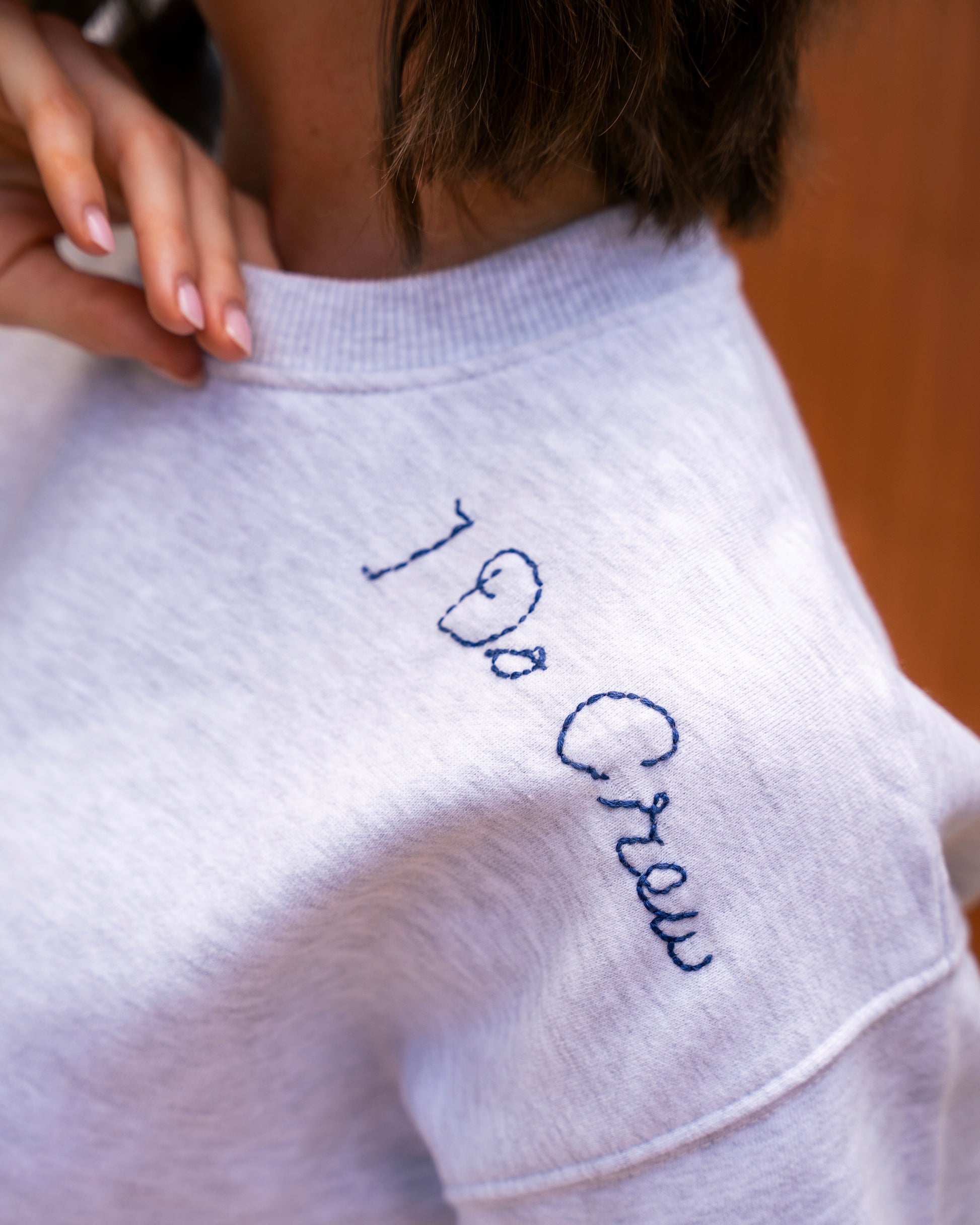 Design your own cozy bridal crewneck with embroidery. Made to order and hand embellished in California.